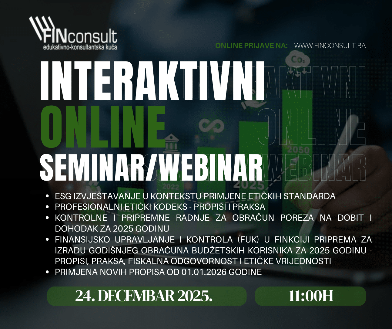 INTERAKTIVNI ONLINE LIVE WEBINAR – 24. DECEMBAR 2025. 8. ciklus kontinuirane edukacije INTERAKTIVNI ONLINE LIVE WEBINAR FINconsult će u skladu sa godišnjim planom održati interaktivni online live seminar/webinar u okviru...Continue reading→